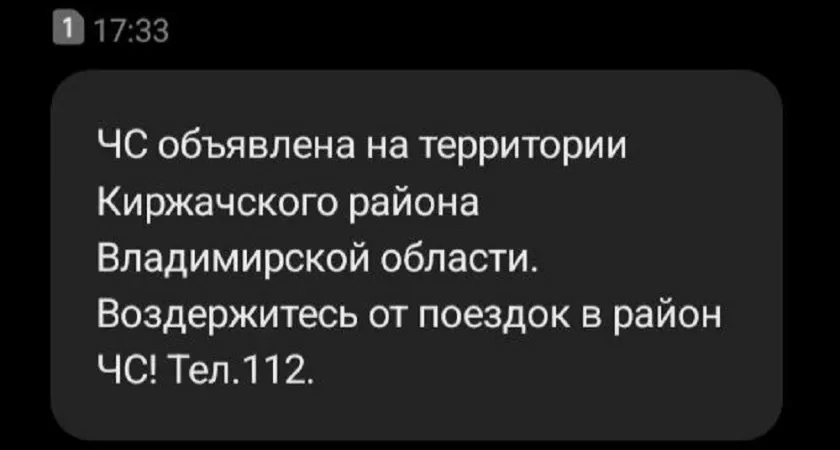 Кроме этого, единая государственная система предупреждения и ликвидации чрезвычайных ситуаций разослала предупреждения об объявлении ЧС на территории Киржачского района.