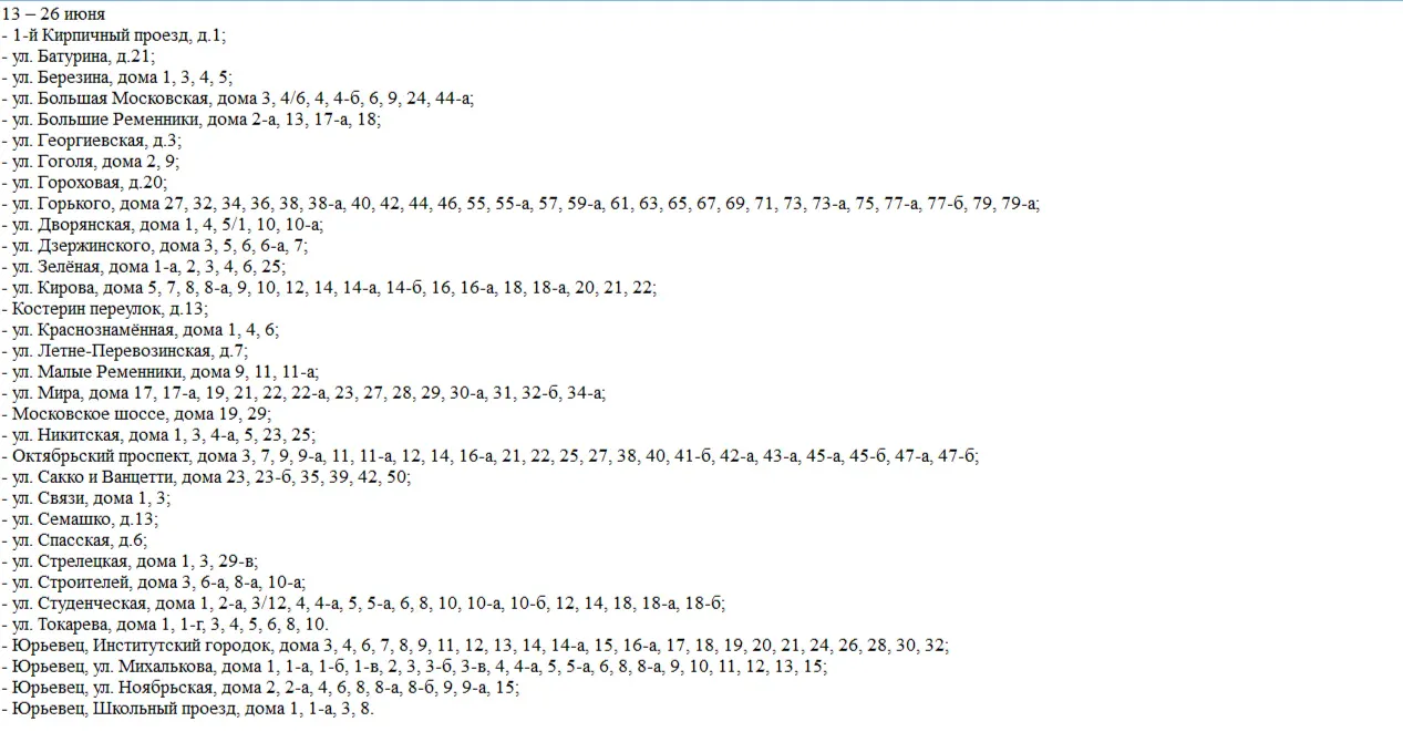 Подробный график отключения горячей воды на весь период можно посмотреть на