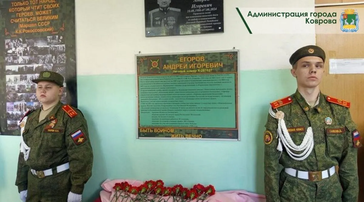В Коврове, в школе №4, торжественно открыли мемориальную доску памяти выпускника, погибшего танкиста СВО, Андрея Игоревича Егорова. На открытии присутствовали родственники героя и учителя, ученики.
