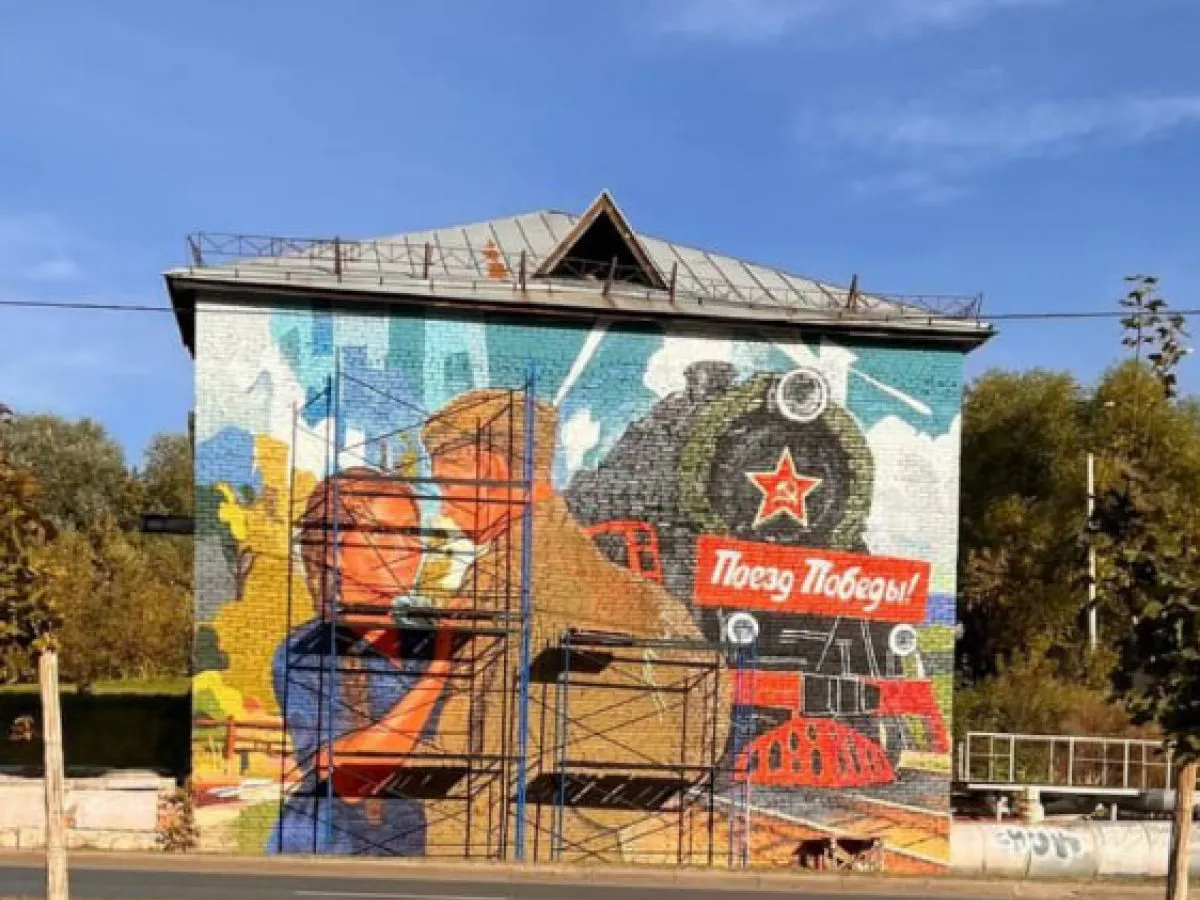 На Лыбедской магистрали во Владимире теперь можно увидеть свежий мурал. На нем запечатлена девушка, в ожидании возвращения отца с линии фронта. За ее спиной — панорама города и состав «Победа», как символ уважения к 80-й годовщине Победы в Великой Отечественной войне.