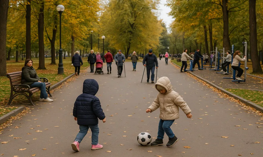 В парке «Дружба» утро начнётся со скандинавской ходьбы «Шаги к здоровью», а затем малышей и родителей ждут игры и мастер-классы «Зайкины задачки» и «Делаем вместе».