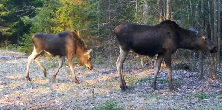 Трогательные кадры диких животных в естественной среде обитания удалось получить специалистам охраняемых территорий. Как сообщает Правительство Владимирской области, автоматическая камера зафиксировала самку лося с годовалым детенышем в Клязьминско-Лухском заказнике Вязниковского района.