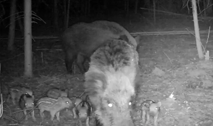 Во Владимирской области фотоловушка засняла группу диких поросят