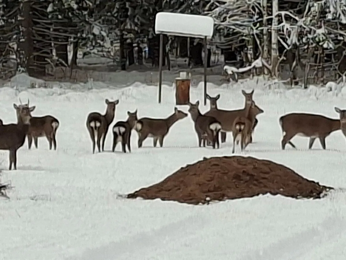В Суздальском районе сфотографировали пятнистых оленей у кормушки
