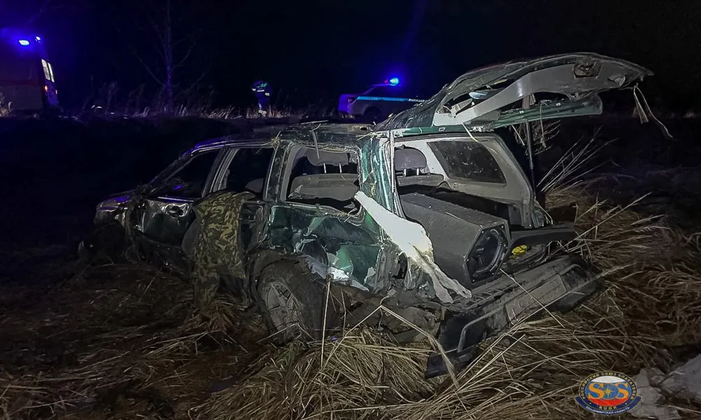 Спасатели сразу направились к месту. Когда они приехали, картина стала ясна: Subaru стоял под уклоном, зажат колесами в мягкой земле. Следов серьёзного удара не было, но видно, что машину занесло на дороге, и съезд был довольно резким.